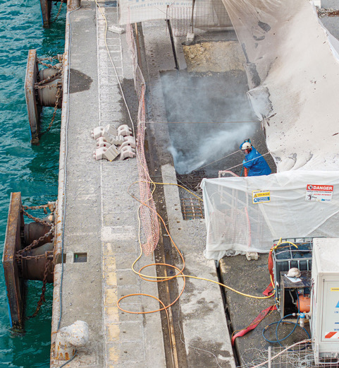 Les contraintes liées aux chantiers ultra-marins, transport du matériel par container, adaptation au climat tropical et maintien de l’activité portuaire, ont exigé une organisation sans faille et une expertise affirmée en hydrodémolition.